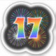 Este design divertido e excitante adesivo apresenta um padrão colorido inspirado em fogos de artifício comemorativos que explodem, juntamente com o número "17", tendo um espectro de inspiração multicolorido no arco-íris ou um padrão de gradiente. Um autocolante como este talvez possa ser usado para celebrar o 17º aniversário de alguém, ou talvez o 17º aniversário de casamento de um casal, ou qualquer outro 17º evento. [~Z0000362]