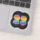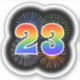 Este design divertido e excitante adesivo apresenta um padrão colorido inspirado em fogos de artifício comemorativos que explodem, juntamente com o número "23" que inclui um espectro multicolorido inspirado no arco-íris ou um padrão de gradiente. Um autocolante como este pode ser usado para celebrar o vigésimo terceiro aniversário de alguém, ou talvez o vigésimo terceiro aniversário de casamento de um casal, ou qualquer outro 23º evento. [~Z0000362]