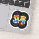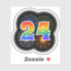 Este design de adesivo vibrante e divertido apresenta um padrão colorido inspirado em fogos de artifício comemorativos que explodem, juntamente com o número "24", tendo um espectro multicolorido como o arco-íris ou padrão de gradiente. Um adesivo divertido como este talvez possa ser usado para celebrar o vigésimo quarto aniversário de alguém, ou talvez o vigésimo quarto aniversário de casamento de um casal, ou qualquer outro 24º evento. [~Z0000362]