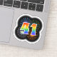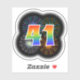 Este design de adesivo vibrante e divertido apresenta um padrão colorido inspirado em fogos de artifício comemorativos que explodem, juntamente com o número "41" tendo um espectro multicolorido como o arco-íris ou padrão de gradiente. Um adesivo excitante como este pode talvez ser usado para celebrar o quarenta primeiro aniversário de alguém, ou talvez o quarenta primeiro aniversário de casamento de um casal, ou outro evento de 41 ruas. [~Z0000362]