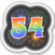 Este design divertido e excitante adesivo apresenta um padrão de inspiração para fogos de artifício celebratórios coloridos, junto com o número "54" com um espectro multicolorido inspirado no arco-íris ou padrão de gradiente. Um autocolante excitante como este talvez possa ser usado para celebrar o cinquenta e quarto aniversário de alguém, ou talvez cinquenta e quarto aniversário de casamento de um casal, ou qualquer outro 54º evento. [~Z0000362]
