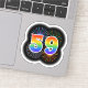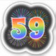 Este design de adesivo vibrante e divertido apresenta um padrão colorido inspirado em fogos de artifício comemorativos que explodem, juntamente com o número "59", tendo um espectro de inspiração multicolorido no arco-íris ou um padrão de gradiente. Um adesivo divertido como este talvez possa ser usado na celebração do cinquenta e nono aniversário de alguém, ou talvez do cinquenta e nono aniversário de casamento de um casal, ou de algum outro evento de 59 anos. [~Z0000362]