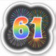 Este design de adesivo vibrante e divertido apresenta um padrão colorido inspirado em fogos de artifício comemorativos que explodem, juntamente com o número "61", tendo um espectro de inspiração multicolorido no arco-íris ou um padrão de gradiente. Um adesivo excitante como este pode ser usado para celebrar o sessenta primeiro aniversário de alguém, ou talvez o sessenta primeiro aniversário de casamento de um casal, ou qualquer outro evento de 61ruas. [~Z0000362]