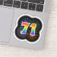 Este design de adesivo divertido e excitante apresenta um padrão de fogos de artifício celebratórios coloridos, inspirado no espetáculo, juntamente com o número "71", que tem um espectro de inspiração multicolorido no arco-íris ou um padrão de gradiente. Um autocolante como este talvez possa ser usado na celebração dos setenta e um anos do primeiro aniversário de alguém, ou talvez dos setenta e um casal do primeiro aniversário de casamento, ou de algum outro evento de 71ruas. [~Z0000362]