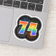 Este design de adesivo vibrante e divertido apresenta um padrão colorido inspirado em fogos de artifício comemorativos que explodem, juntamente com o número "74" tendo um espectro multicolorido como o arco-íris ou padrão de gradiente. Um autocolante excitante como este talvez possa ser usado na celebração dos setenta e quatro anos de aniversário de alguém, ou talvez dos setenta e quatro anos de casamento de um casal, ou de algum outro evento do 74º. [~Z0000362]