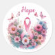 Fita rosa de conscientização sobre o cancer da mama rodeada por flores e borboletas e a palavra "esperança". Coloque-os nos envelopes para ajudar a espalhar a consciência.