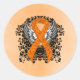 Fita laranja com asas de anjo e padrão de filigrana. A fita laranja significa Sensibilização para a Esclerose Múltipla em março, Autoconsciência em março, Sensibilização para Melanoma em maio, Sensibilização para o Cancer da Pele em maio, Sensibilização para a Leucemia em setembro, Sensibilização para a Diversidade Cultural em outubro, Sensibilização para a Fome em outubro, Sensibilização para o Lupus em outubro, RSD/CRPS em novembro, bem como Consciência de gatos Feral Agente Laranja Consciência, Sensibilização para a Segurança de Motocicletas e Consciência Racial da Tolerância.