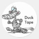 Este design toca no erro de ortografia da fita adesiva. Um pato de desenho animado embrulhado em fita adesiva.