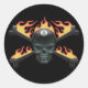 Crânio e bósforos com cabeça de 8 bolas, ossos pretos e chamas de haste quente. Camisas, suores, cartas, presentes.