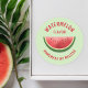 A ilustração da fatia da fruta de melancia vermelha e verde de Destei em uma cor verde-clara de fundo. Há também três áreas de texto personalizáveis.