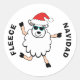 Adesivos de Natal engraçados "Feliz Navidad" (ou selos de envelope) apresentam uma ovelha alegre dançando usando um chapéu de Papai Noel vermelho com uma saudação de Natal "FLEECE Navidad". Arte original KL Stock