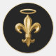 A flor de lis original de ARTegrity com um halo que senta-se sobre uma flor de lis do ouro que fosse projetada sobre 4 anos há para todo meu N'Awlins companheiro "santos e pecadores". De "encanto de boa sorte Fleur de Halo" em t-shirt, em bonés, em etiquetas e em presentes da lembrança.