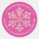 Essas etiquetas de Natal personalizadas em forma redonda, com um rico tom de rosa-berries escuro e um design rústico de floco de neve com brilho falso, podem ser usadas como etiquetas de endereço de devolução que fazem dupla função como selo de envelope. Fáceis de personalizar, o nome e o texto do espaço reservado para o endereço curvando-se em torno da borda em uma fonte branca simples podem ser facilmente alterados para uma mensagem de Natal, em vez disso, para que você possa usá-los para decorar presentes, selar sacolas de presentes de festa de Natal e muito mais. Simples, porém elegantes, essas etiquetas de Natal rosa framboesa sofisticadas, apresentando um único floco de neve rosa com brilho falso e seu texto, são uma maneira festiva de trazer a tendência de cor de Natal rosa.