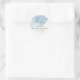 Adesivo temático de inverno "obrigado" com um deslumbrante design abstrato de aquarela em azul empoeirado, adornado com pequenos flocos de neve.