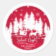 Um adesivo de Natal com palhetas brancas, silhuetas com flocos de neve e um trenó desenhado a cavalo sobre fundo vermelho festivo, com a menção Noite Silenciosa em letra manuscrita. Facilmente personalizável adicionando seu próprio nome de família ou texto