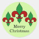 Estes autocolantes de férias apresentam uma elegante fêmur de lis design, vermelha e verde, num fundo verde, e as palavras "Feliz Natal". Excelente para selos de envelope, etiquetagem de produtos cozidos, etc.