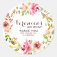 Este obrigado de festa de aniversário bonito - você tem adesivos com uma borda de cobertura floral de cor d'água. Obrigado por se juntar à celebração está em uma simples tipografia de ameixa para coordenar com as cores da coroa floral. Personalize com o seu nome e a idade.