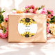 Vinheta redonda de casamento em amarelo e branco com arte de girassol, noiva e nomes de noivo. Mais produtos com esse design estão na coleção abaixo.