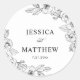 Essas belas etiquetas de casamento florais em preto e branco apresentam os nomes do casal e a data do casamento. O design combina fontes de caligrafia, serifa e sem serifa para um visual moderno e elegante. Para personalizar a etiqueta, basta clicar em "Personalizar este design" e inserir suas informações. A Zazzle cuida do resto.
