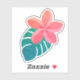 Um adesivo de flores tropicais com design de cor de água de plumeria floral rosa e laranja e folhas de monstera verde. Inspirado pelos belos frangipanis no Havaí.