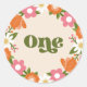 Estes autocolantes de primeiro aniversário super fofos apresentam um quadro floral desenhado pela mão, incluindo margaridas, em laranja, rosa, verdes em tom de azeitona, ouro mudado e branco sobre um fundo colorido de creme. A Tipografia Retro diz, "Um" em verde-oliva correspondente. Excelente para uso como selos de envelopes, cupcake superior, favoritos e muito mais! * Ilustração de Tracey Khalei / Impressões Orabella.