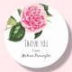 Adesivo de agradecimento personalizável, com uma flor floral cor-de-rosa, Camellia, sobre fundo branco limpo.
