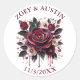 Rosas borgonha elegantes personalizadas e flores brancas com arte em aquarela de pérolas. Adesivos bonitos para selar convites de casamento e sacolas de lembrancinhas.