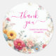 Modelo de Rótulo de Agradecimento de Flores de Aquarela com Texto Personalizado, Letra à Mão, Adesivo Redondo Clássico.