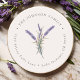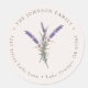 Um adesivo redondo de endereço de devolução elegante e lindo, apresentando flores de lavanda pintadas à mão em aquarela. Personalize e faça o seu próprio!