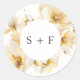 Elegante e romântico adesivo redondo de flores de ouro branco e amarelo em aquarela com suas iniciais. Use como selo para seus convites de casamento.
