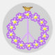 Um trabalho de arte de flores roxas transformadas em um Sinal de Paz com uma Borboleta laranja sentada no topo, exibida em Stickers.