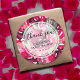 Obrigado Os chás de panela destacam o nome da noiva, a ocasião e a data num fundo de flores e folhas rosa-quentes. CORRESPONDENTE a itens na nossa coleção.