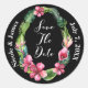 Adesivos de Salvar a Data Flores e Folhas de Jardim Tropical. Personalize com qualquer texto que você quiser.