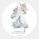 Convites de chá de noiva com flores rosa e vestido de noiva. Este lindo design apresenta elegantes folhas de eucalipto em aquarela, rosas rosa e vestido de noiva. Compre o seu hoje! Itens combinando disponíveis!