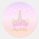 Adesivo de fundo com tons de flores estrelas unicórnio na Ipanema. O texto pode ser personalizado.
