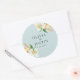 Este adesivo de casamentos florais de aquarelas apresenta flores silvestres do jardim em cor branca, amarelo quente e laranja.A cor amarela quente, creme, branca e azul empoeirado é uma paleta de cores perfeita para casamentos de primavera e verão.