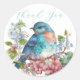 Flores românticas de verão com obrigado azul de pássaro, você circula adesivos com nome e texto personalizáveis para presentes elegantes e quentes!