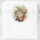Uma bela imagem de vintage das flores em cores cor-de-rosa variada é mostrada neste adesivo redondo. Use essa correspondência especial, reserva de sucata ou decoração para Primavera!