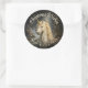 Esta figurinha de fantasia apresenta um unicórnio com um chifre dourado em pé entre árvores de abeto, misturando mitologia e capricho. O design é perfeito para diários, convites e projetos de scrapbook. Uma área de texto personalizável permite adicionar um nome ou mensagem, dando um toque pessoal a papelaria e artesanatos temáticos.