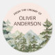 Apresentando nosso adesivo Rustic Watercolor Forest & Mountain Bookplate. Apresentando a ilustração de aquarela da floresta de pinheiros rústicos. Personalize-o com seu nome para um toque exclusivo. Adequado como presente para entusiastas da natureza e amantes de livros.