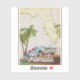 Belo mapa ilustrado do estado da Flórida e das ilhas da região em um belo estilo de vintage com um carro retrô dos anos 50.