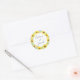 Coloque o seu convite em envelopes ou favores com esses adesivos florais quadrinhos apresentando seus nomes emoldurados por uma faixa de aquarela de girassóis amarelos rústicos, folhagem verde e botões azuis e roxos. Coordena-se com a nossa coleção de casamento Flowerfields.