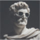 Um busto de mármore branco de um antigo grego vestindo óculos de sol