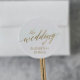 Estes elegantes selos de casamentos de caligrafia de ouro são perfeitos para um casamento simples. A design neutra apresenta um adesivo minimalista decorado com tipografia falsa de ouro romântica e caprichosa. Personalize o rótulo com os nomes da noiva e do noivo. Nota: Este design não apresenta folha de ouro real. É um gráfico de alta qualidade feito para se parecer com folhas de ouro.