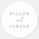 Estas selas de envelope de casamento rústicas com guião de ouro de rosa são perfeitas para um casamento no campo. O simples e moderno design de cor-de-rosa e branco-rosa, roxo-branco, apresenta uma letra de caligrafia manuscrita caprichosa única, com um estilo de boho minimalista contemporâneo. Personalizável em qualquer cor. Mantenha o design mínimo e simplista, como está, ou personalize-o adicionando seus próprios gráficos e trabalhos de arte. Personalize o rótulo com os nomes da noiva e do noivo.