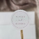 Estas selagens minimalistas de ouro de rosa são perfeitas para um casamento simples. A design romântica moderna apresenta clássico de ouro rosa e tipografia branca emparelhada com uma caligrafia rustica, mas elegante, com estilo antigo, com letra de mão. Personalizável em qualquer cor. Mantenha o design simples e elegante, como está, ou personalize-o adicionando seus próprios gráficos e trabalhos de arte. Personalize o rótulo com os nomes da noiva e do noivo.