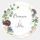 Estas selagens geométricas de envelopes de ouro cheias são perfeitas para um casamento no inverno. O elegante design apresenta marinho de aquarela, cor-de-rosa-pincelada e flores de sombra de vinho com detalhes artísticos lápis. Personalize as etiquetas com os nomes da noiva e do noivo.