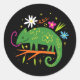 Adesivo fofo caractere de bebê chameleon verde-quirky.