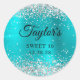 Crie seus doces 16 paus de bondade de festa de aniversário. Garota cintilante prateado cintilante na borda superior e inferior, sobre uma folha metálica azul-aqua azul. Personalize os estilos de fonte para criar o seu próprio adesivo design para sua celebração especial. Uma caligrafia elegante clássica emparelhada com uma fonte serif de todos os bonés.