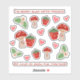 "Estou feliz por sermos amigos!" "Nos divertimos tanto juntos!" Estes designs pintados à mão de morango e cogumelo irão adicionar um toque de doçura ao seu Dia de os namorados. Amigos de cogumelo e morango, flores e folhas de morango, e corações cor-de-rosa são a forma perfeita de decorar um diário de balas, página do calendário de fevereiro, Namorados DIY, ou simplesmente dar as folhas de adesivo como um favor de namorados ou prêmio de sala de aula! Vermelho, verde e trabalho de arte de marfim vibrantes.